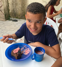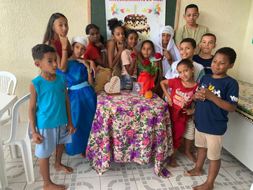As crianças apresentaram, também, uma encenação sobre a vida dela e cantaram parabéns para irmã Maria Rosa e mais duas pessoas que fizeram aniversário nesse mês e a tarde se encerrou com um delicioso bolo de chocolate com sorvete de morango!